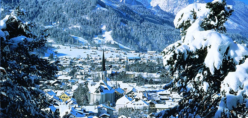 Garmisch-Partenkirchen is one of the most important climatic spa resorts of the Bavarian Alps and Germany’s winter sports capital. It is located in the heart of the German Alps, flanked by the Wetterstein, one of the mightiest mountain ranges of the northern Alps, and the Zugspitze (9730 ft.). It offers an unlimited choice of hiking trails, including level ones in the valley. Convention Center, Kurpark with daily outdoor music performances in summer, casino, pedestrian zone, shopping. 9 cablecars, many ski lifts and chairlifts. Cogwheel train and cablecar to the Zugspitze.