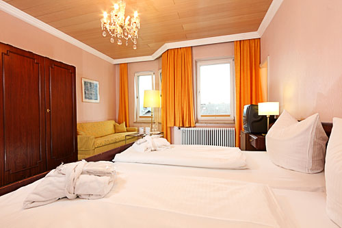 Entièrement equipé, lit à 2 personnes kingsize, 2 matelas, fauteuils ou canapé, douche, WC, TV, balcon au sud, donnant sur le jardin et avec vue de Zugspitze et Wetterstein. Tapis. 20 m.c. Pas de lit supplémentaire possible. Peignoir et slipper de bain.